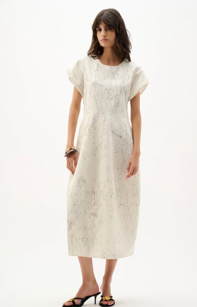 This abstract crinkle cocoon dress flows with an easy, sculptural shape. Designed with a crew neckline and short dolman sleeves, it’s finished with a back zipper and a...
