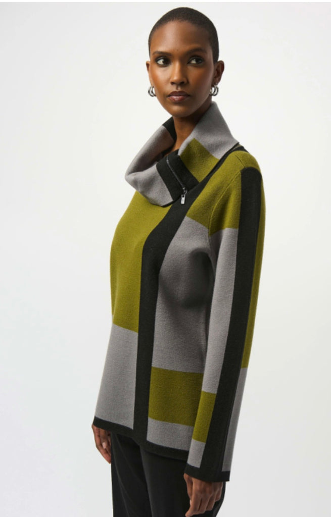 With its sophisticated cowl neck and chic colour block design, this jacquard sweater is a smart addition to your cold weather wardrobe. Long straight sleeves and a straight silhouette provide added comfort, making it both...