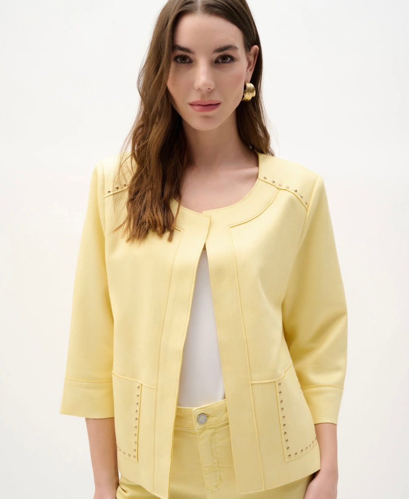 Foiled Scuba Suede Boxy Jacket with stud details by Joseph Ribkoff.